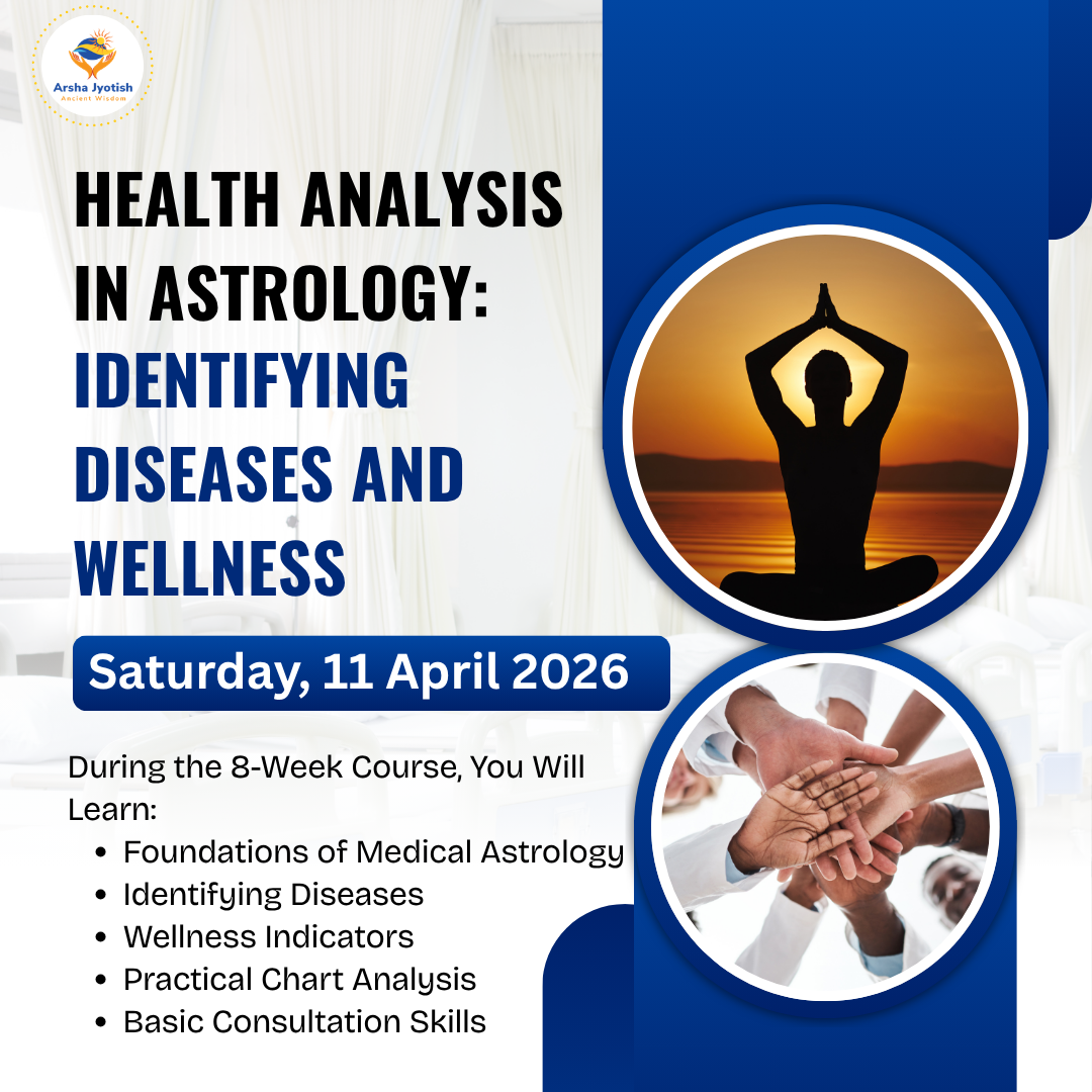 Course Curriculum:- Transit (Gochara) analysis, Special yoga, Prashna technique, Remedies, Medical astrology, Health analysis, Marriage & Compatibility, Vedic counseling, Horoscope analysis